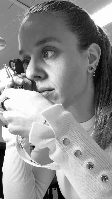 Her journey into diamonds led her to complete the Polished Diamond Grading certification at IGI, deepening her understanding of each stone beyond its surface. This expertise allows her to carefully select every diamond with precision and intention.