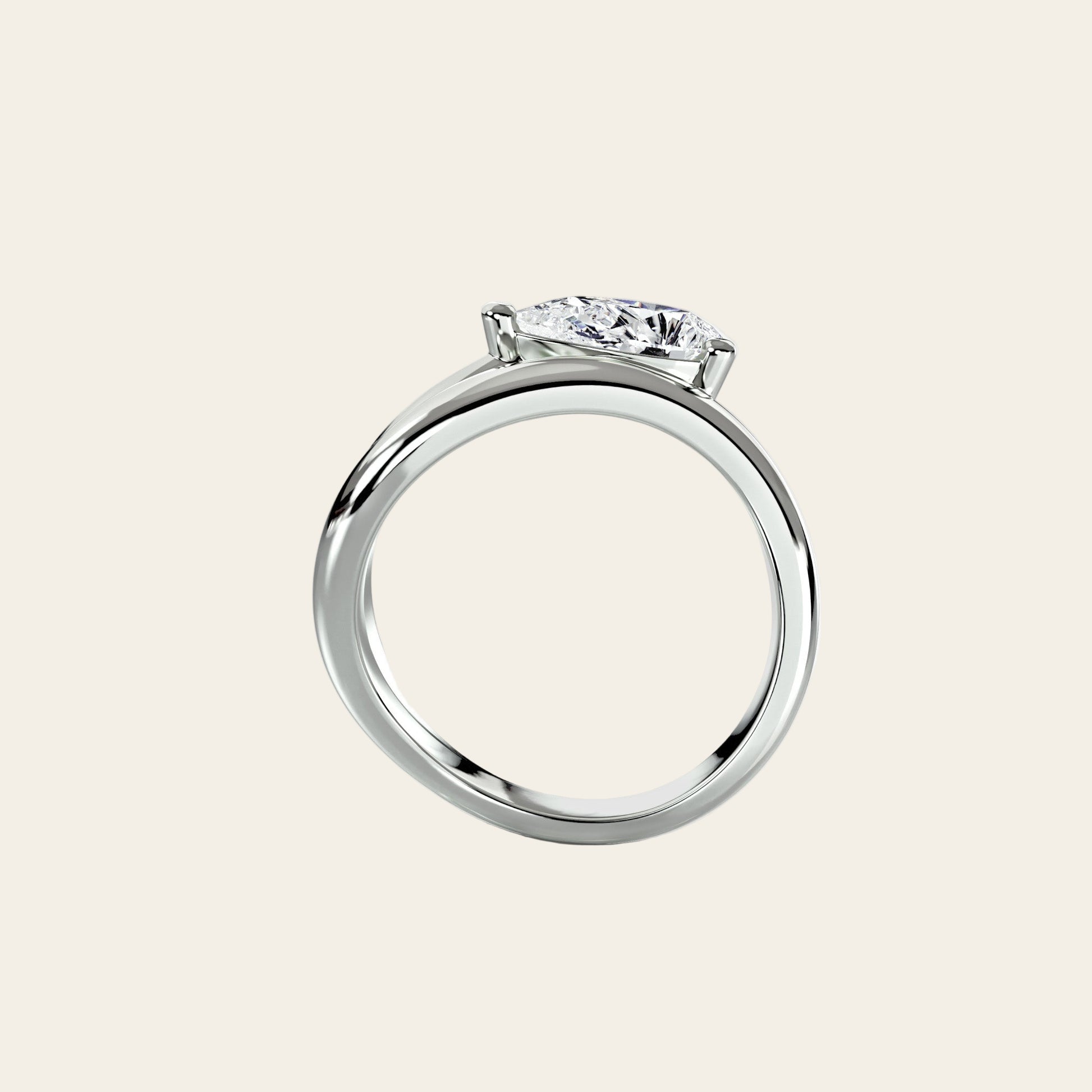 Two souls, one destiny. The pear-cut diamond rests on gold bands that intertwine like two intersecting paths, becoming a single story. Timeless yet bold, this ring is not just a symbol: it is the promise of a love that is not ordinary.